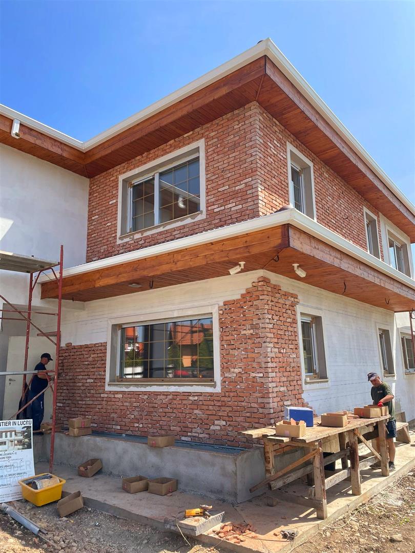 Cărămida feliată veche este obținută din cărămizi originale recuperate din demolări — gospodării, case vechi, hale industriale — tăiate manual în felii subțiri pentru a fi folosite ca placare decorativă. Nu este un produs industrial turnat în matriță și nu imită aspectul vechi: este veche. Cărămida aparentă obișnuită este produsă nou, în fabrică, și recreează vizual aspectul tradițional. Diferența o simți imediat: textura, imperfecțiunile și patina naturală sunt imposibil de reprodus artificial.
